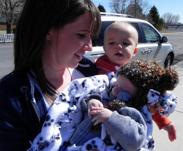 | Angelyn had to hand Colin off to Kristi before Lauren ran out into the road. Kristi had her hands full of Henry already. (Eight kids four years-old and younger and three adults? What just happened?!) |